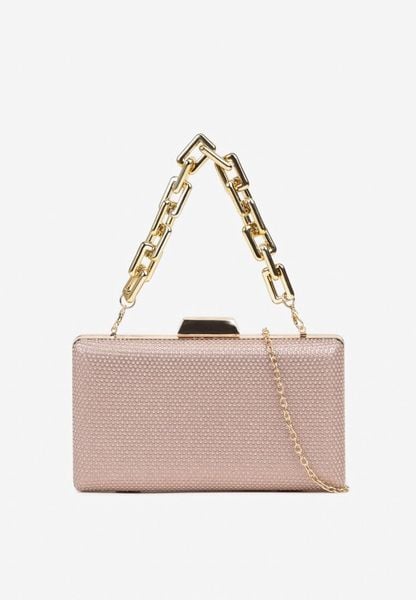 Szampańska Torebka Kopertówka z Łańcuszkiem Zdobiona Metaliczną Aplikacją Idalinna
