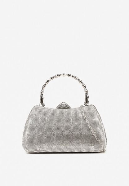 Srebrna Torebka Koktajlowa z Rączką Wysadzana Cyrkoniami z Łańcuszkiem Halorea