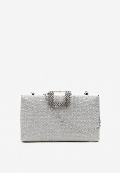 Srebrna Torebka Koktajlowa z Łańcuszkiem i Ozdobnym Zapięciem Telffira