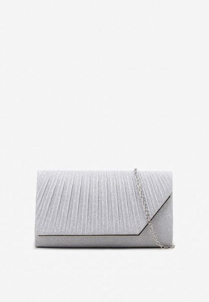 Srebrna Torebka Kopertowa z Błyszczącego Materiału z Łańcuszkiem na Ramię Senalie