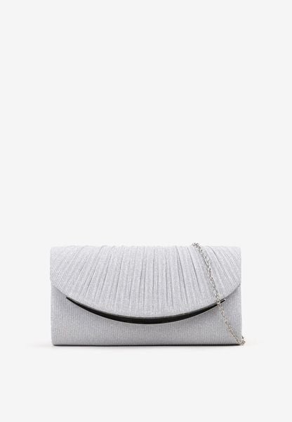 Srebrna Brokatowa Torebka Kopertówka z Ozdobnym Zatrzaskiem i Łańcuszkiem Ridia