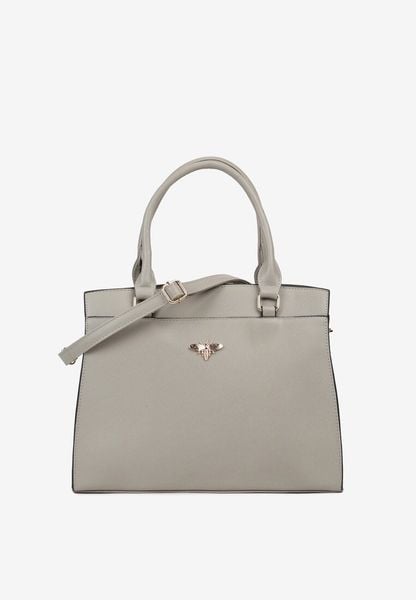 Szara Duża Torebka o Trapezowym Kroju z Owadem Moonalia