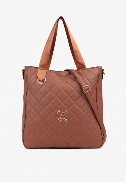 Brązowa Duża Torebka Pikowana Ozdobiona Aplikacją z Regulowanym Paskiem Reriora