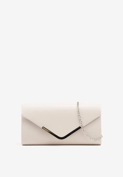 Biała Torebka Kopertówka Zdobiona Metalowym Detalem z Dodatkowym Łańcuszkiem Vorinna
