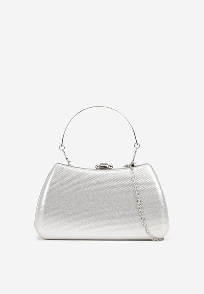 Srebrna Wieczorowa Torebka z Rączką Wykończona Cyrkoniami i Łańcuszkiem Fenagia