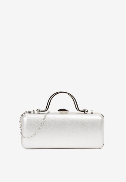 Srebrna Wieczorowa Torebka z Rączką Wykończona Cyrkoniami i Łańcuszkiem Fenagia