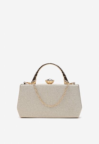 Złota Połyskująca Torebka Kopertówka z Rączką Bronna
