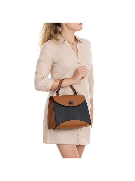 Lia Biassoni Skórzana torebka „Arera” w kolorze czarno-karmelowym – 29 x 23 x 13 cm rozmiar: onesize