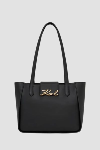 KARL LAGERFELD Czarna shopperka ze złotym logo Signature