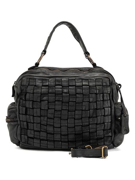 – materiał: skóra bydlęca- powierzchnia: pleciona- uchwyty: 1- długi pasek przez ramię: regulowany, odpinany- zapięcie: suwak- kieszenie zewnętrzne: tak, na zamek- kieszenie wewnętrzne: 1 kieszeń na zamek- wewnętrzne detale: dzielona komora główna- detale: zawieszka- tekstylna podszewka: tak- wyprodukowano we Włoszech
