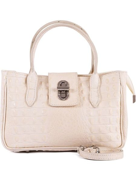 – materiał: skóra bydlęca- powierzchnia: o fakturze krokodylej skóry- uchwyty: 2- długi pasek przez ramię: odpinany- zapięcie: suwak- kieszenie wewnętrzne: 1 kieszeń na zamek, 2 kieszenie otwarte- kieszenie zewnętrzne: tak, na zamek- wewnętrzne detale: komora główna dzielona zasuwaną kieszenią – tekstylna podszewka: tak- wyprodukowano we Włoszech