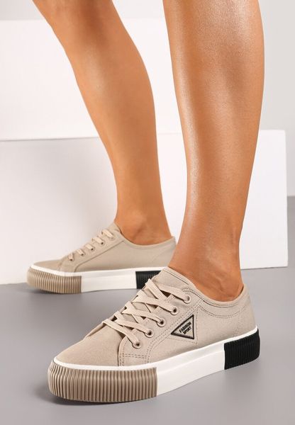 Ciemnobeżowe Sznurowane Trampki na Grubej Podeszwie Vimanta