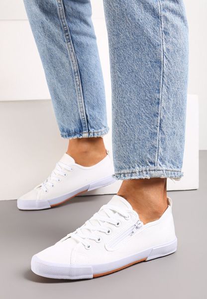 Białe Tenisówki na Płaskiej Podeszwie ze Sznurowaniem i Okrągłym Noskiem Ezoma