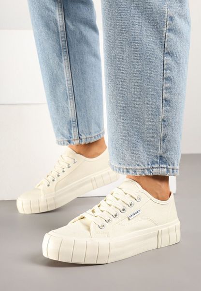 Beżowe Trampki na Grubej Podeszwie z Tłoczeniem Maitiana