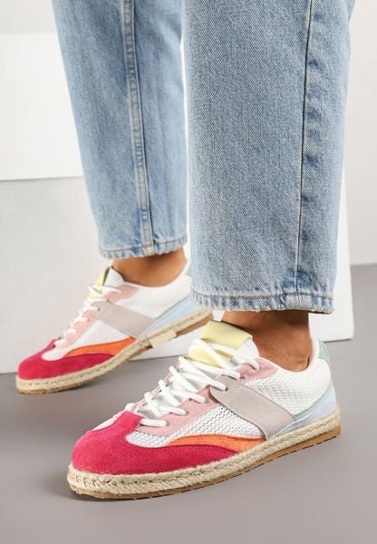 Biało-Szare Sneakersy Kultowe Tenisówki z Podeszwą Zdobioną Plecionką Zarorella