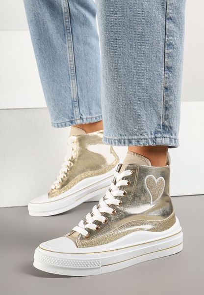 Złote Trampki na Platformie z Serduszkiem za Kostkę Ellista