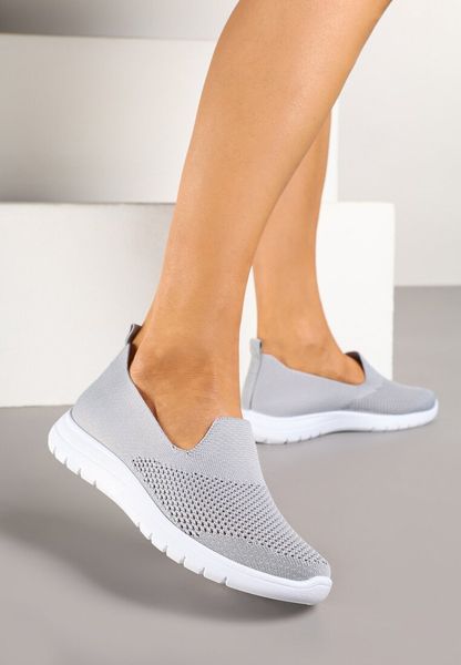 Szare Wsuwane Tenisówki z Ozdobną Perforacją Siltia