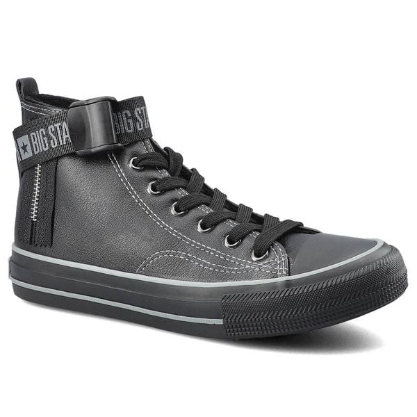 Trampki damskie Big Star, z cholewką z materiału imitującego skórę klasycznym sznurowaniem i zamkiem z boku, czarne, GG274026