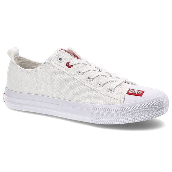 Trampki unisex Big Star, niski model sznurowany wykonany z materiału tekstylnego z metalowymi przelotkami gumowym noskiem i białą gumową podeszwą, bi