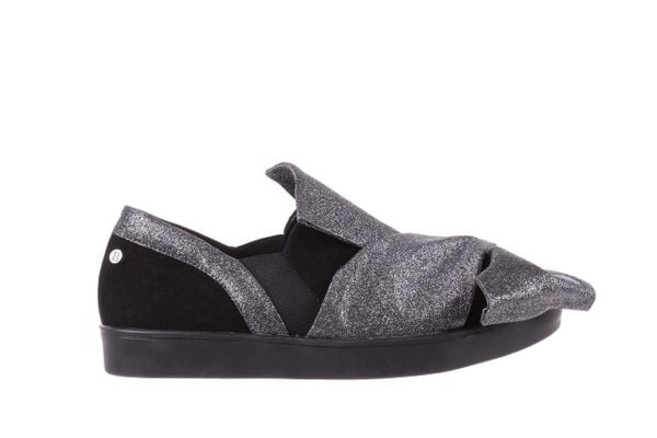 Trampki slip-on marki Bayla. Wykonane z połączenia skóry naturalnej zamszowej oraz materiału pokrytego brokatem. Wsuwane, po bokach posiadają gumeczki, dzięki którym wkładanie butów nie sprawia żadnych problemów. Tył butów, nad piętą ozdobiony gliterowym materiałem, z przodu materiał wywinięty został w kształt kokardy. Po zewnętrznej stronie, przy pięcie trampki posiadają nit w kolorze srebrnym. Wkładka butów […]
