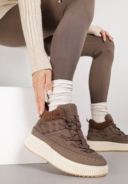 Brązowe Śniegowce Trapery Vices na Grubej Tłoczonej Podeszwie z Przeszyciami Anurrive