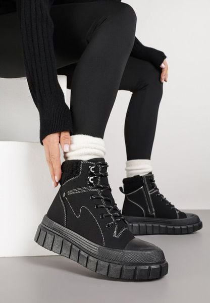 Czarne Traperki Sneakersy Vices na Grubej Tłoczonej Platformie Typu Traperki Narrise
