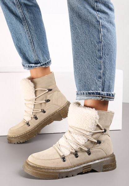 Jasnobeżowe Traperki z Futrzanym Językiem Florica