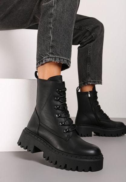 Czarne Masywne Botki Trapery na Platformie w Stylu Militarnym Verola