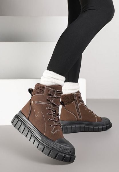 Brązowe Śniegowce Trapery Vices na Grubej Tłoczonej Podeszwie z Przeszyciami Anurrive
