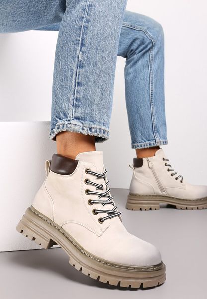 Beżowe Traperki z Ociepleniem i Sznurowaniem Almudena