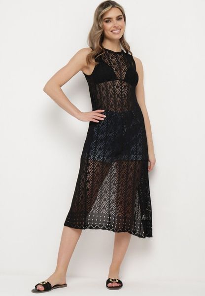 Czarna Ażurowa Tunika Boho bez Rękawów Kimalia