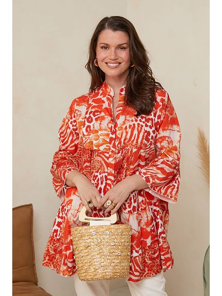 Overbeck and Friends Tunika "Jana" w kolorze czerwono-pomarańczowym rozmiar: M/L