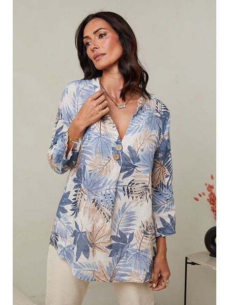 – czysty len- dekolt: V- zapięcie: skrócona listwa guzikowa- długość rękawa: 3/4- dolny brzeg: zaokrąglony- krój: dłuższe plecy- wzór: kwiatowyUwaga: Na metkach odzieży tej marki znajdują się rozmiary francuskie. Rozmiarówka została przez nas przeliczona. Podane do wyboru warianty rozmiarów odpowiadają standardowym europejskim rozmiarom konfekcji. Prosimy zapoznać się z zamieszczonym objaśnieniem rozmiarów.